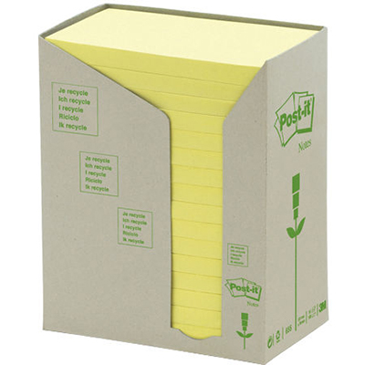 POST-IT 655-RTY RECYCLED NOTES 76 X 127MM CANARY YELLOW PACK 16