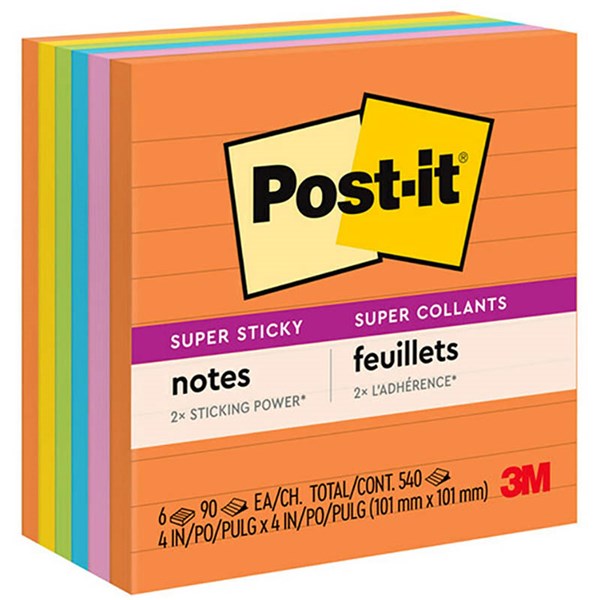 POST-IT 675-6SSUC SUPER STICKY LINED NOTES 98 X 98MM ENERGY BOOST PACK 6