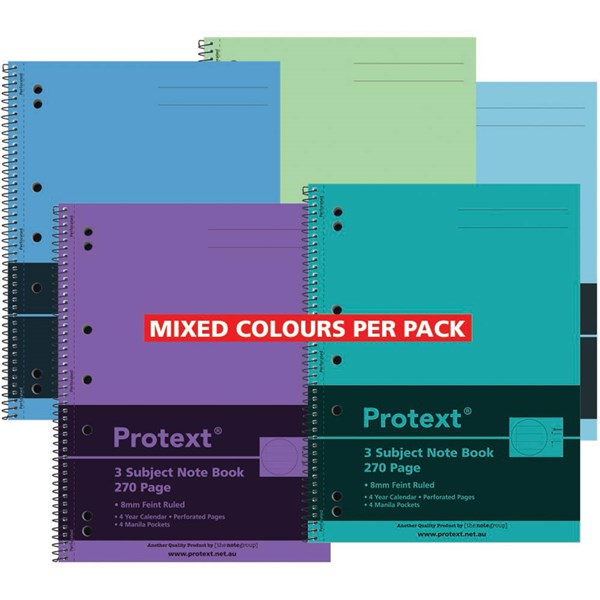 PROTEXT 3-SUBJECT BINDER NOTE BOOK 60GSM 270 PAGE 295 X 223MM ASSORTED