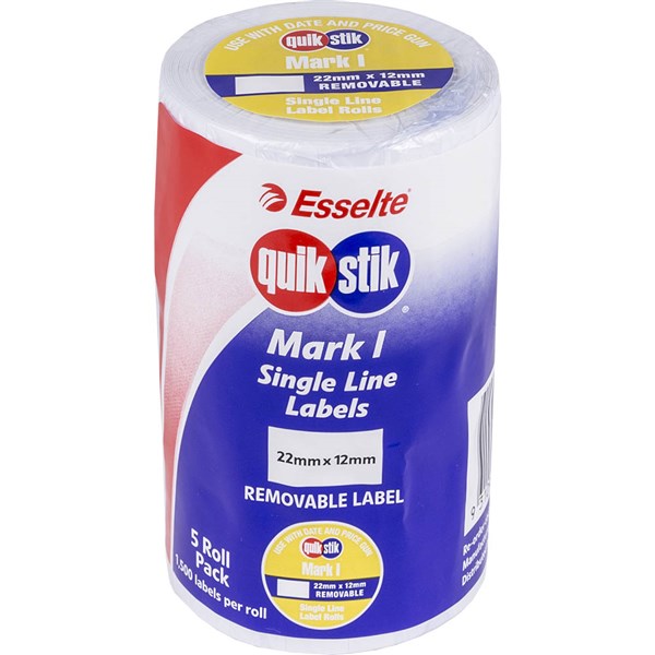 QUIKSTIK MARK I PRICING GUN LABEL REMOVABLE 1500 LABELS/ROLL 22 X 12MM WHITE PACK 5