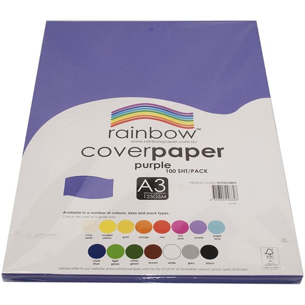 RAINBOW COVER PAPER 125GSM A3 PURPLE PACK 100