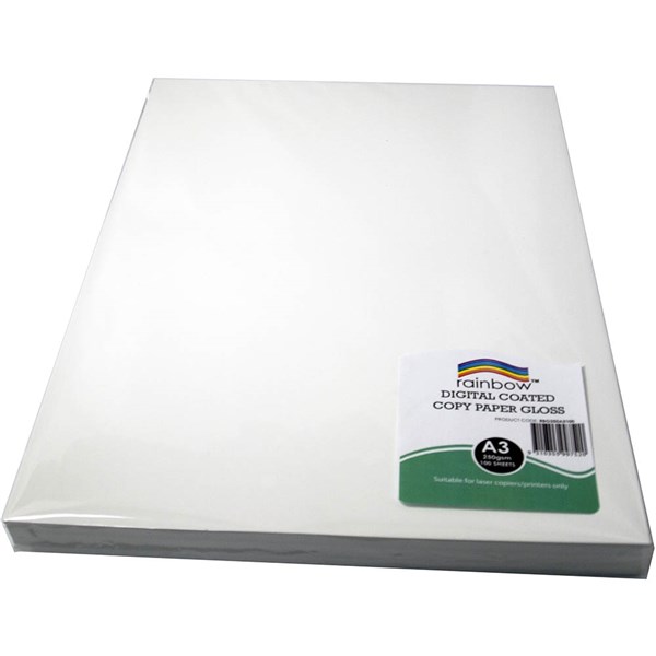 RAINBOW DIGITAL COATED A3 COPY PAPER GLOSS 250GSM WHITE 100 SHEETS