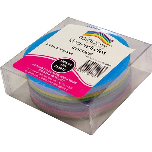 RAINBOW KINDER SHAPES PAPER CIRCLES 85GSM 120MM GLOSSY ASSORTED PACK 500