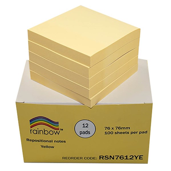 RAINBOW REPOSITIONAL NOTES 76 X 76MM 100 SHEET PAD YELLOW PACK 12