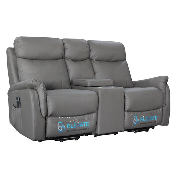 RAPIDLINE HOME ELEVATE ASCOT LOVE SEAT DUAL MOTOR MEDIUM LEATHER DARK GREY