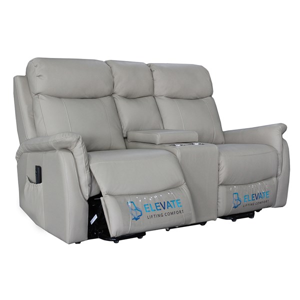RAPIDLINE HOME ELEVATE ASCOT LOVE SEAT DUAL MOTOR MEDIUM LEATHER TAUPE