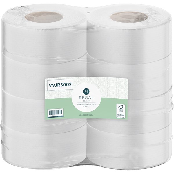 REGAL CLASSIC JUMBO TOILET ROLL 2-PLY 300M PACK 8