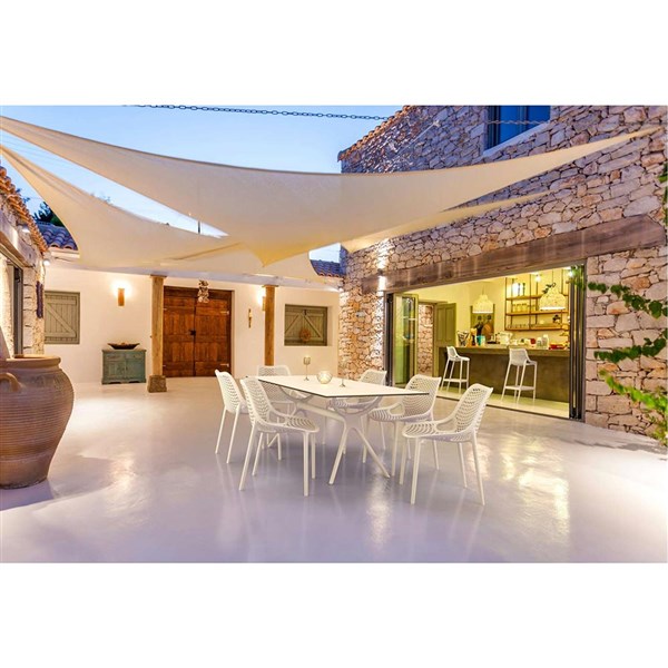 Elevate your outdoor dining experience with the Outdoor Dining Setting featuring a sleek Air Table 180 and six durable Siesta Air Chairs, crafted in Europe with UV-stabilized materials suitable for both indoor and outdoor commercial use, offering style, comfort, and environmental sustainability with warranties included