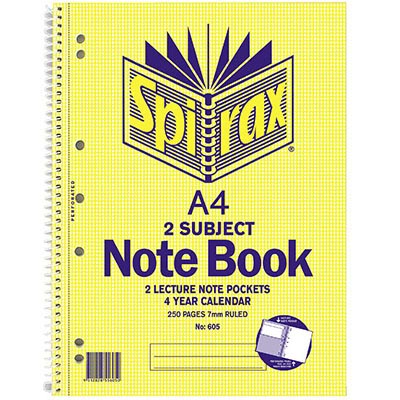 SPIRAX 605 2 SUBJECT NOTEBOOK 7MM RULED SPIRAL BOUND 250 PAGE A4