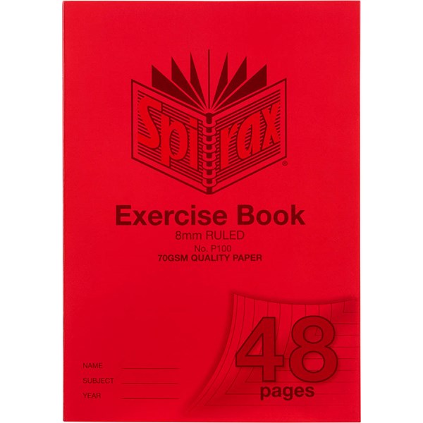 SPIRAX P100 EXERCISE BOOK 8MM RULED 70GSM 48 PAGE A4 RED