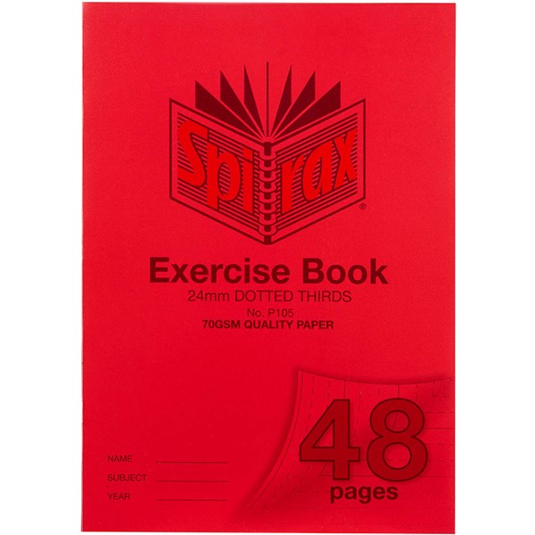 SPIRAX P105 EXERCISE BOOK 24MM DOTTED THIRDS 70GSM 48 PAGE A4 RED