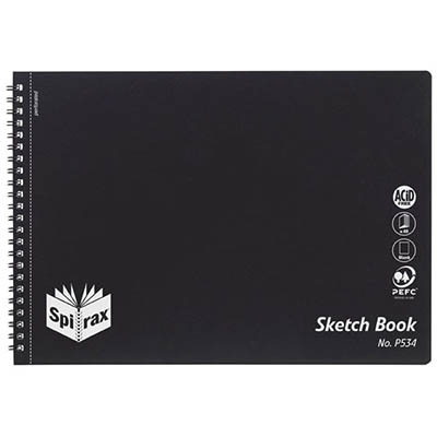 SPIRAX P534 SKETCH BOOK SPIRAL BOUND SIDE OPEN 40 PAGE A4 BLACK