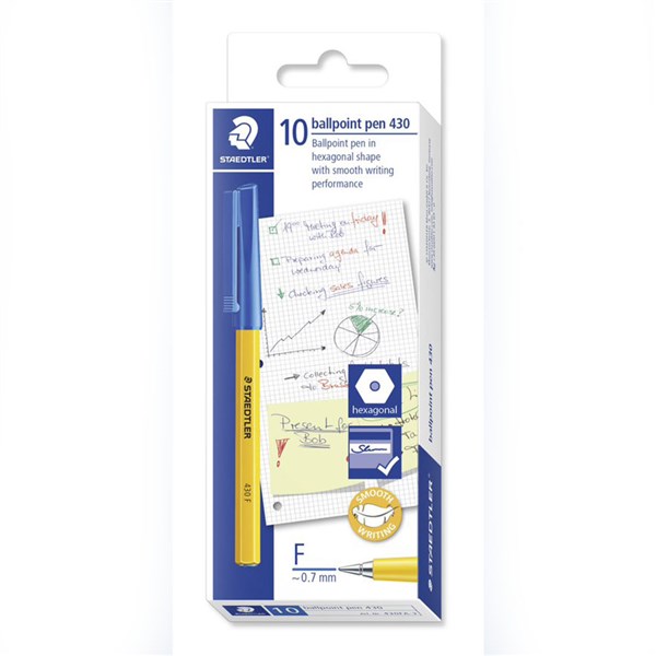 STAEDTLER 430 STICK BALLPOINT PEN FINE BLUE BOX 10