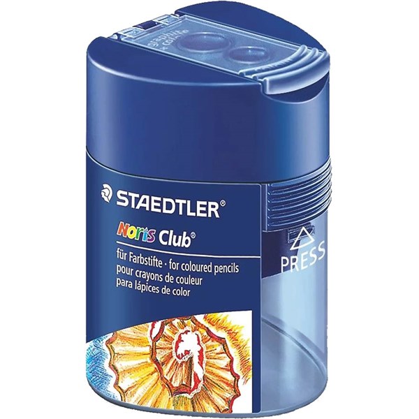 STAEDTLER 512 NORIS PENCIL SHARPENER TRIANGULAR 2-HOLE TUB BLUE