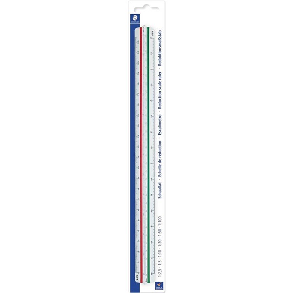 - Blistercard containing 1 reduction scale ruler, version DIN (1:2,5, 1:5, 1:10, 1:20, 1:50, 1:100)