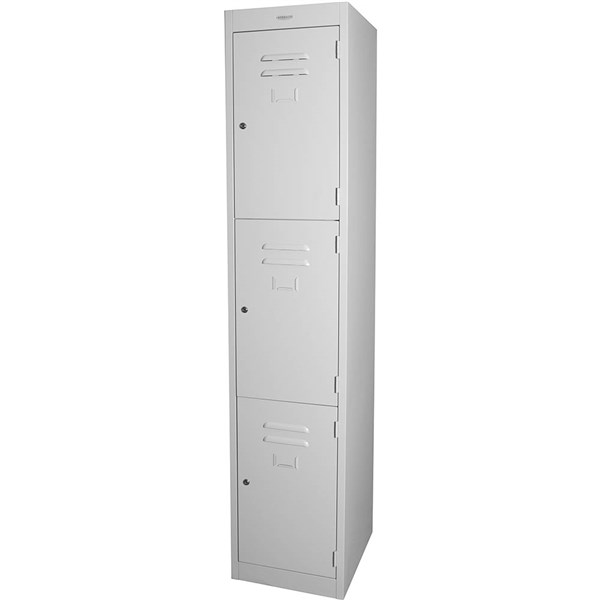 STEELCO PERSONNEL LOCKER 3 DOOR LATCHLOCK 380MM SILVER GREY