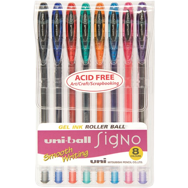 UNI-BALL UM120 SIGNO GEL INK ROLLERBALL PEN 0.7MM ASSORTED WALLET 8