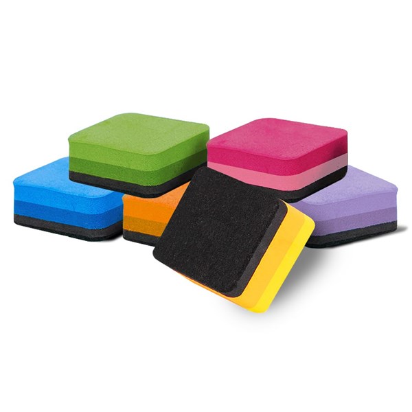 VISIONCHART WHITEBOARD ERASERS 50 X 50MM ASSORTED COLOURS PACK 12