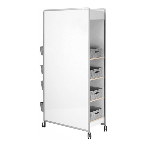 VISIONCHART WHITEBOARD HUDDLE MOBILE STORAGE WITH EXTRA 2 SHELVES AND 10 STORAGE BASKETS