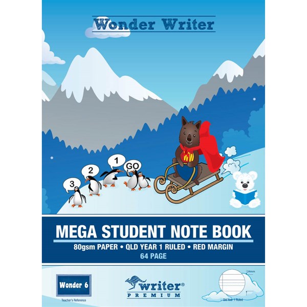 WONDER WRITER MEGA STUDENT NOTEBOOK QLD RULING YEAR 1 24MM 64 PAGE 330 X 240MM WONDER 6