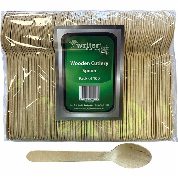 WRITER BREAKROOM ECO WOODEN CUTLERY SPOON 160MM NATURAL PACK 100