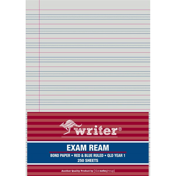 WRITER EXAM PAPER QLD RULED YEAR 1 24MM A4 WHITE 250 SHEETS