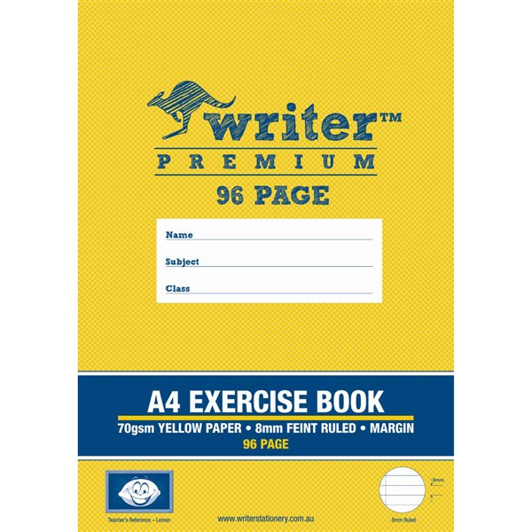 WRITER PREMIUM EXERCISE BOOK FEINT RULED 8MM 75GSM 96 PAGE A4 LEMON
