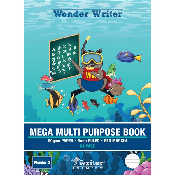 WRITER PREMIUM MEGA MULTI-PURPOSE BOOK 8MM RULED 80GSM 64 PAGE 330 X 240MM WONDER 2