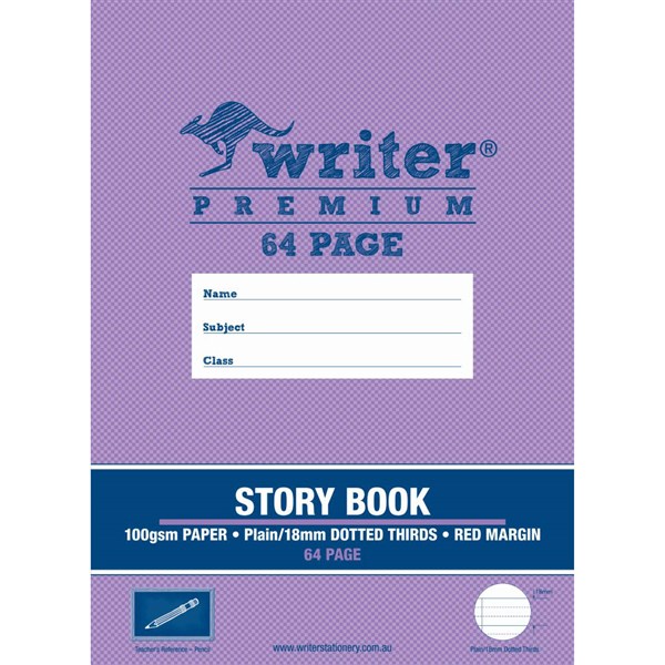 WRITER PREMIUM STORY BOOK 18MM PLAIN/DOTTED THIRDS 100GSM 64 PAGE 330 X 240MM PENCIL