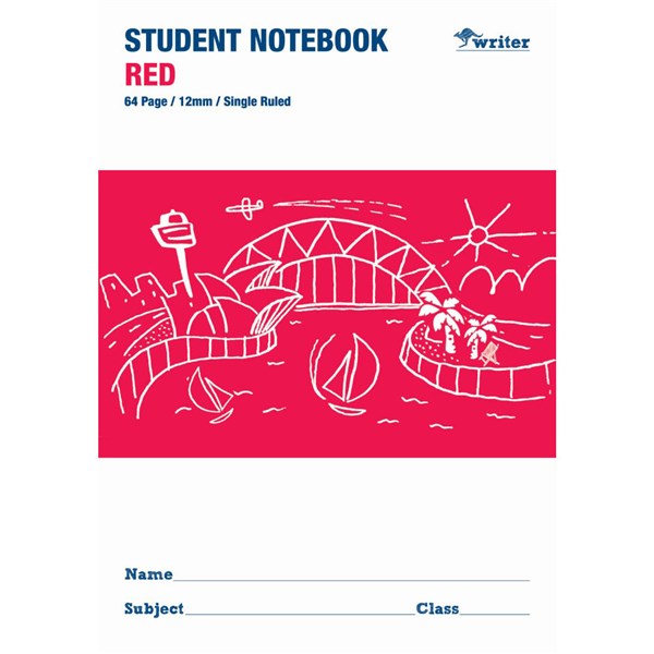 WRITER STUDENT NOTEBOOK 12MM SINGLE RULED 64 PAGE 250 X 175MM RED