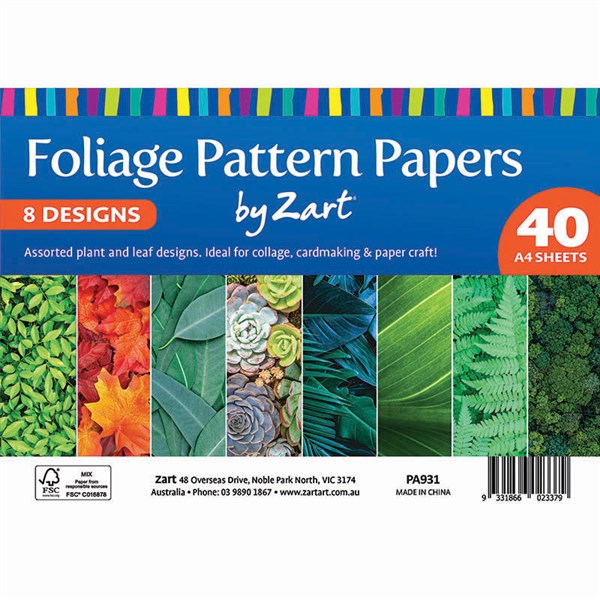 ZART PATTERN PAPERS FOLIAGE A4 PACK 40