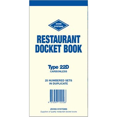 - Zions offers a wide range of single, duplicate, triplicate and quadruplicate restaurant docket books, suitable for all styles of bistros, cafes, restaurants and take-away outlets